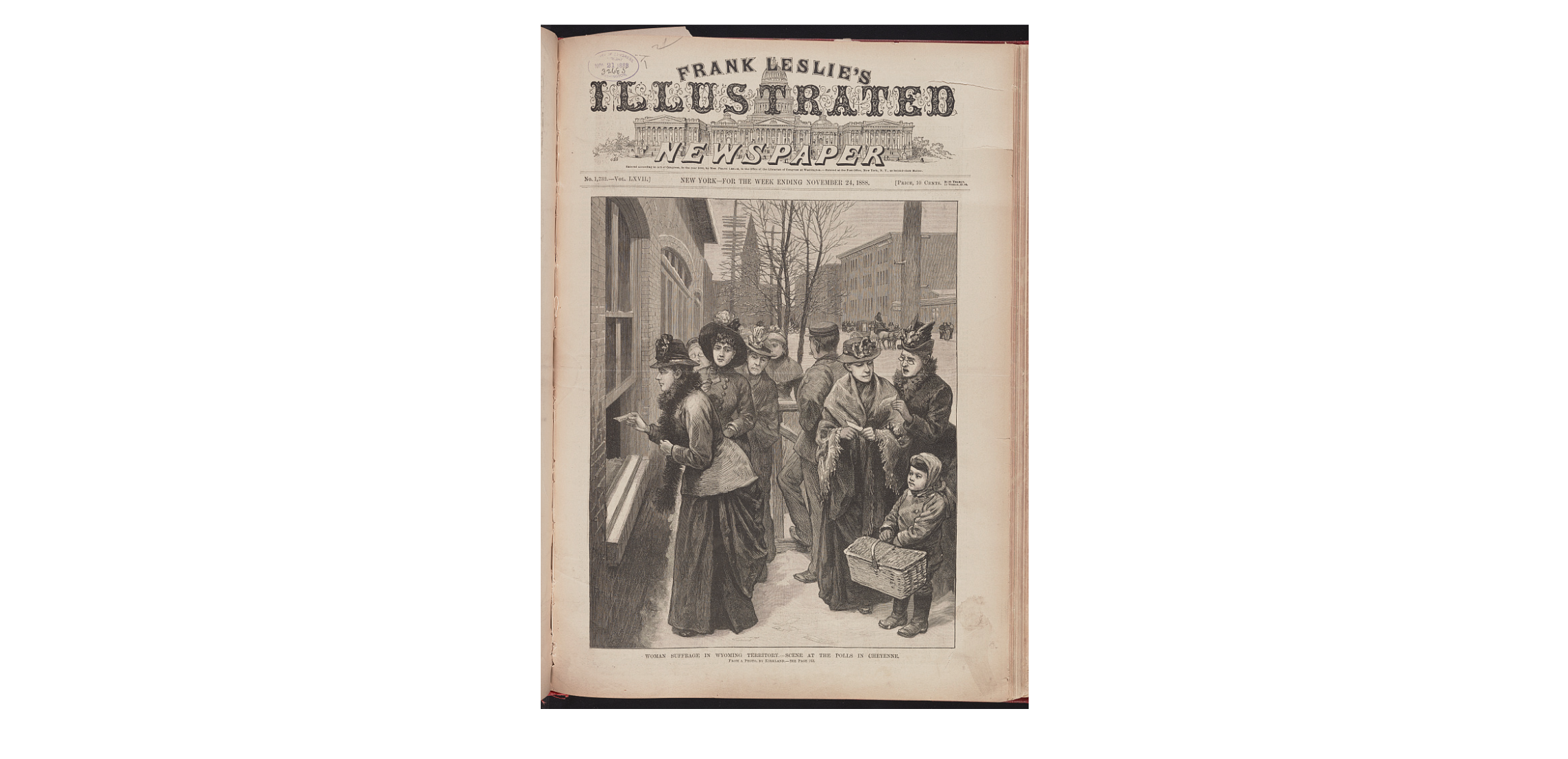 Frank Leslie's Illustrated Newspaper. Woman suffrage in Wyoming Territory. -- Scene at the polls in Cheyenne.