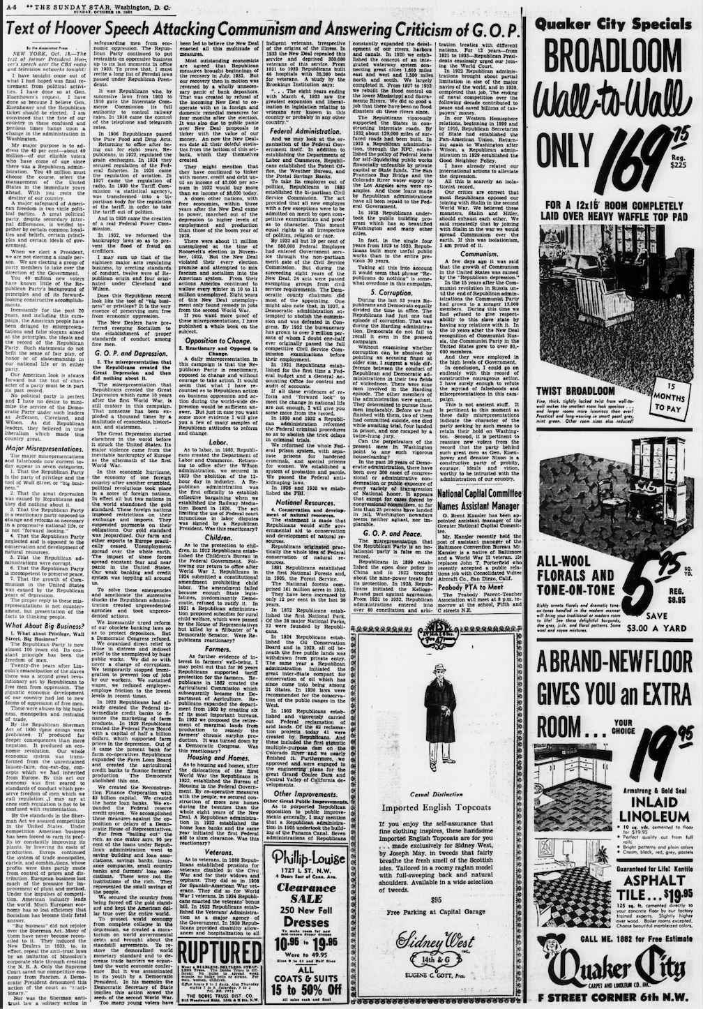 "Text of Hoover Speech Attacking Communism and Answering Criticism of G.O.P"