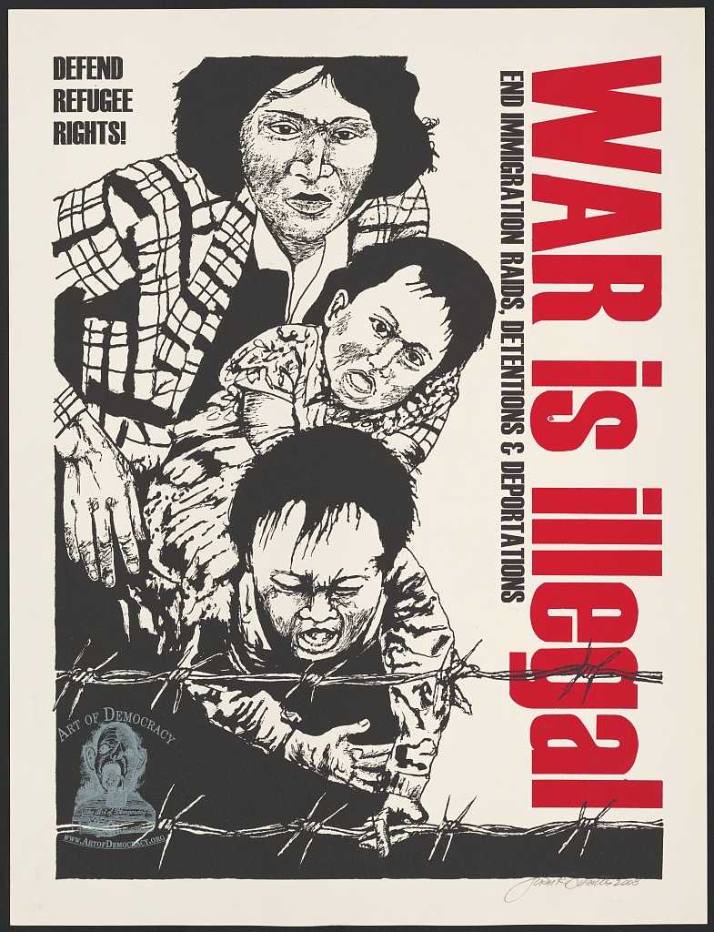 Fuentes, Juan, “War is illegal. End immigration raids, detentions & deportations. -- Defend refugee rights!,” Santa Clara University Digital Exhibits, accessed April 18, 2026, https://dh.scu.edu/exhibits/items/show/5749.